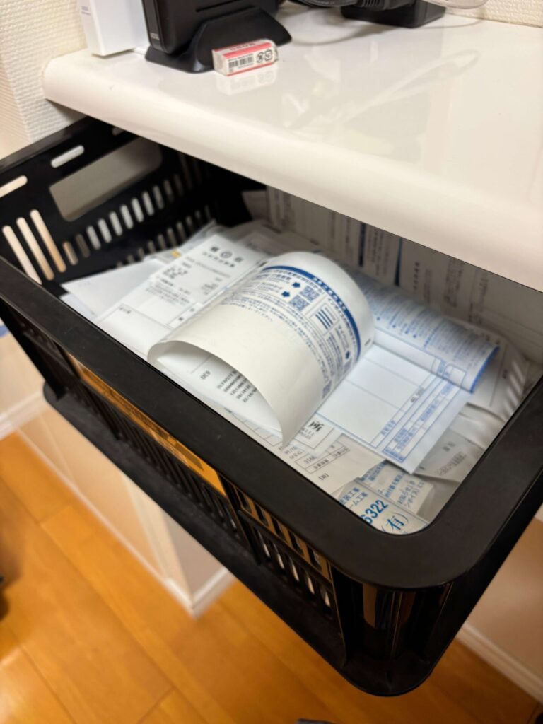 実家の母の引出しケースは、その中身のほとんどが領収書や契約内容のお知らせハガキでした。しかも十数年前のものがそのまま入れられていました。